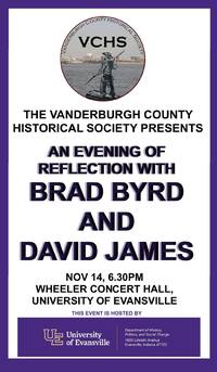 Evansville, Ind. (11/03/2025) — Two of Evansville's most respected voices in journalism, Brad Byrd and David James, will share stories and insights during An Evening of Reflection at the University of Evansville (UE) on Friday, November 14, at 6:30 p.m., in Wheeler Concert Hall.