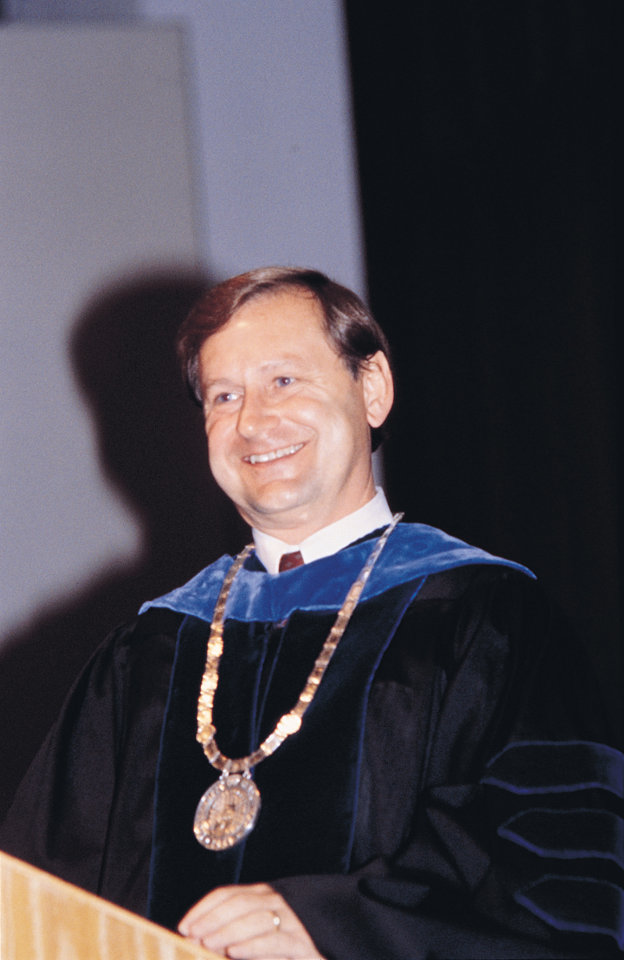 During his 14-year presidency, the University experienced significant growth in academic programs and student opportunities. Dr. Vinson was admired not only as a leader, but also as a teacher and mentor, often beginning his days in the classroom teaching 8 a.m. physics courses.